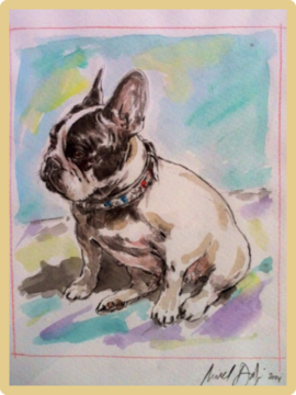 ZU MEINEM GEBURTSTAG HAT MARION WELLING, DIE EIGENTÜMERIN VON PABLO (Will 'O' the Wisp vom Isern Hinnerk), DEM VATER VON VIELEN UNSERER WELPEN UND NUN AUCH DER VATER VON GALAS 1. WURF, MIR EIN BILD VON IHR GEMALT.